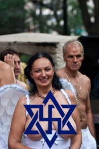 This past Sunday was the National Go Topless Protest, a day in which women are encouraged to bare their goodies in the name of “equality between men and women…being topless in public.” Some states don’t allow women to let their nips fly, and the protest aims to change that. Sounds all well and good, but who exactly is behind this mammary-freeing scheme? Why, none other than the extra-terrestrial worshiping Raëlians, whose symbol is a swastika intertwined with a Jewish Star.